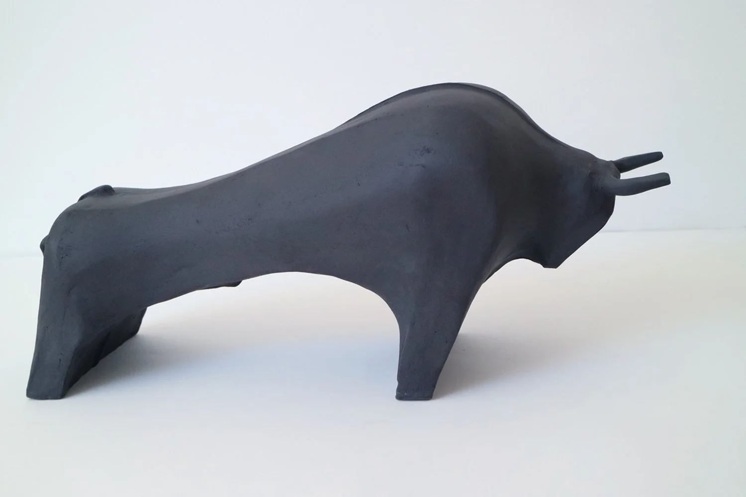 Bull sculpture, black stoneware, 2025